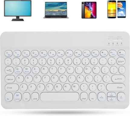 Ultra-Slim Bluetooth Keyboard Portable Mini Wireless Keyboard Rechargeable iOS Android Windows (10 inch White) Arabic/Eng Layout | HighEnd