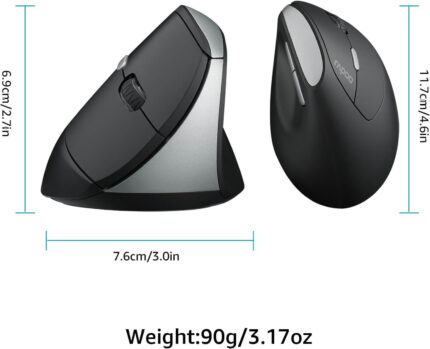 Rapoo EV250 Silent Vertical Ergonomic Mouse, 2.4G Wireless Optical Mouse, 800/1000/1200/1600 DPI, Quiet Clicks, 5 Buttons, Compatible with Windows/Mac OS/iPad OS, Laptop, PC – Black