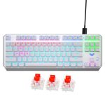 AULA F3087 Mechanical Gaming Keyboard with RGB Rainbow Backlit, ABS Keycaps, 87 Keys Anti-Ghosting Ergonomic USB Type-C Wired Computer Keyboards for Windows PC (Red Switch, White Keycaps)