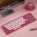 Dual Modes Slim Mini Keyboard With Touch pad | Bluetooth & 2.4GHZ USB | For Windows/Android/IOS/Mac OS | HighEnd | Arabic/Eng Layout Light | Red