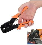 Jakemy JM-CT4-3 is a tool for crimping, stripping, and trimming network and telephone cables.