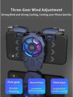 AK03 new release, cooling back clip + chicken-eating artifact, the back clip is an air-cooled radiator, suitable for mobile phones with a width of 67-85mm, wide applicability, with cool lights, can be turned off, three-speed wind adjustment, with 400mah battery, can be used 3-4 hours.