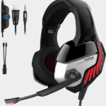 【GREAT HUMANIZED DESIGN】The retractable headband design with synthetic leather-wrapped ear-cushions allows you to play for hours in complete comfort; Adjustable headband suits all gamers at any age. Glaring LED lights desigend on the earcups to highlight game atmosphere.