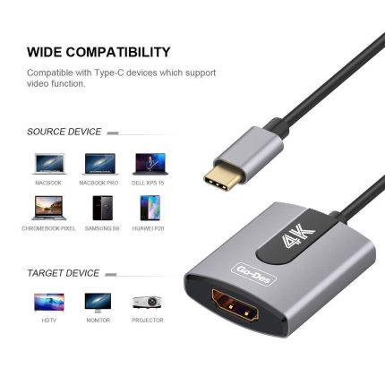 - 5. PD3.0 female port connects power adapter to supply power to equipment (smartphone) while sharing video to larger screen.