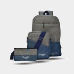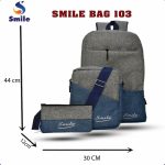 Smile Business Laptop Backpack Unisex Travel School Bag 3 Pieces Smart Backbag | HighEnd | Blue-Grey