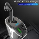 YESIDO Y37 Car Charger with Earphone Car Charger Adapter and Bluetooth Earbud Dual Port Fast Charging