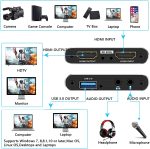 - 🎀🎁【WIDELY APPLICATION】- The HDMI to usb 3.0 audio capture card can be launched immediately on any platform with ultra-low latency technology.The HDMI audio video capture card is very suitable for high-definition capture, live broadcast, conference room, video recording, teaching recording and gameplay. With this video capture card,it is much easier for you to stream live to Twitch/Youtube/OBS/XSplit/Potplayer/Tiktok.You can enjoy recording everything.
