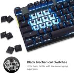 • 【MECHANICAL GAMING KEYBOARD】 87 Keys Compact portable Mechanical Gaming Keyboard with Custom Mechanical Feeling Keyboard Switches (Outemu brown/black switches). Designed for longevity with greater durability and responsiveness. The switches are of the highest quality, d for 50 million keystrokes.