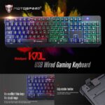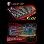 Motospeed K70L Keyboard 7 Colorful LED Backlit Wired Desktop Keyboards Water Resistant USB Gaming Computer Keyboard