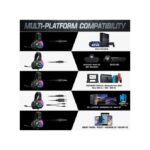 – Cool unique LED light: glaring LED lights are designed on the ear cups, highlighting the atmosphere of the game