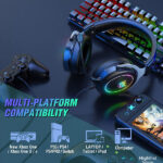 - 【Cool RGB Lights Flowing&Great Ergonomically Design】This PS4 headset has RGB lights flowing, creating a cool gaming atmosphere, especially at night! Besides the sleek looking.Our gaming headphone has two ultra-soft and breathable bionic protein earmuffs. We ran hundreds of tests on different heads, the adjustable head beam and breathable soft memory protein ear pad make sure every player could enjoy the optimal wearing comfort.