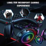 【Cool RGB Lights Flowing&Great Ergonomically Design】This PS4 headset has RGB lights flowing, creating a cool gaming atmosphere, especially at night! Besides the sleek looking.Our gaming headphone has two ultra-soft and breathable bionic protein earmuffs. We ran hundreds of tests on different heads, the adjustable head beam and breathable soft memory protein ear pad make sure every player could enjoy the optimal wearing comfort.